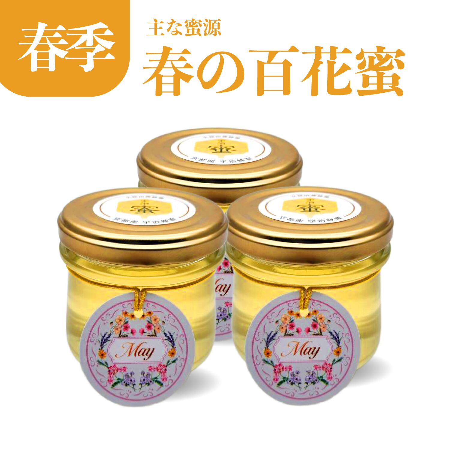 春の百花蜜を3本詰めてお届けいたします。